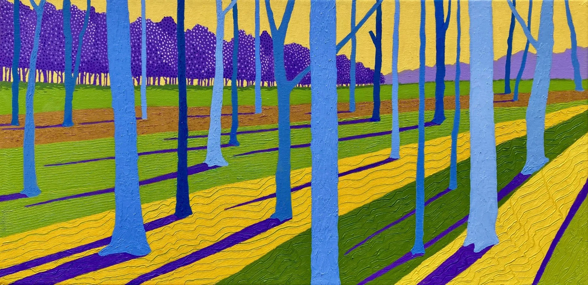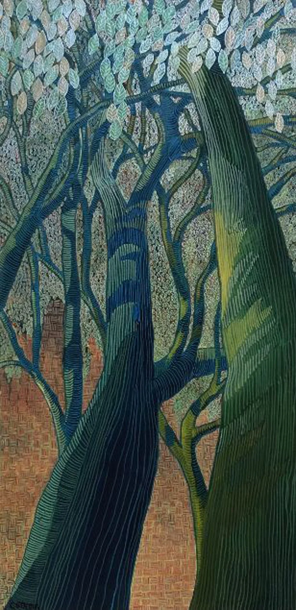 Rosemary Cotnoir Shadow Trees in Blue & Green 48x24 oil