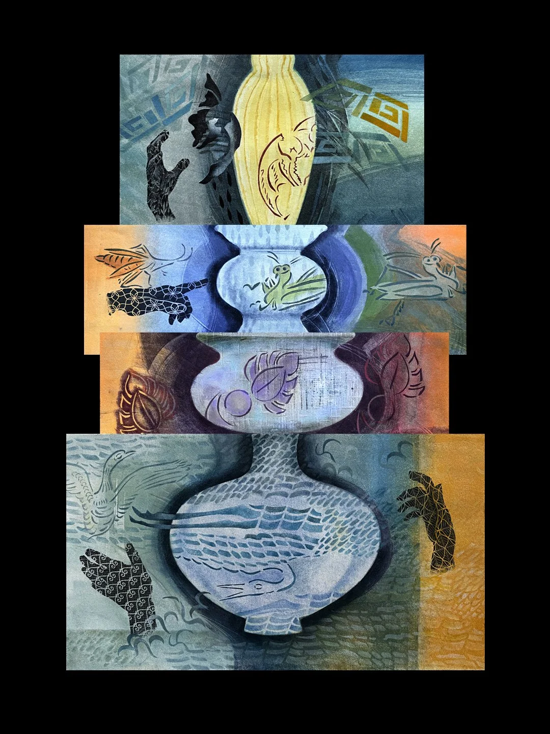Margot Rocklen Potter's Magic- Motifs At Hand 1 Mixed Media Monoprint 46.5x32.5 $2500